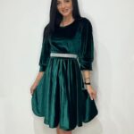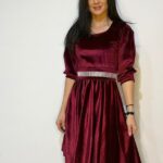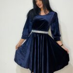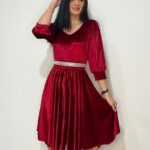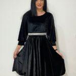 Rochie Ana din catifea, un material cu o textură foarte plăcută la atingere, perfectă pentru orice ocazie. Croiul fustei este in cloş, mânecile sunt trei-sferturi, usor bufante la umăr, iar linia decolteului este rotunjită. În talie atât elastic cât şi un cordon cu un accesoriu argintiu, cordonul este inclus. Rochia nu dispune de căptuşeală interioară şi nici de sistem de închidere. Lungimea totală a rochiei este de aproximativ 1 m. Culori disponibile: negru, verde, grena, roşu, albastru, bluemarin, roz.
